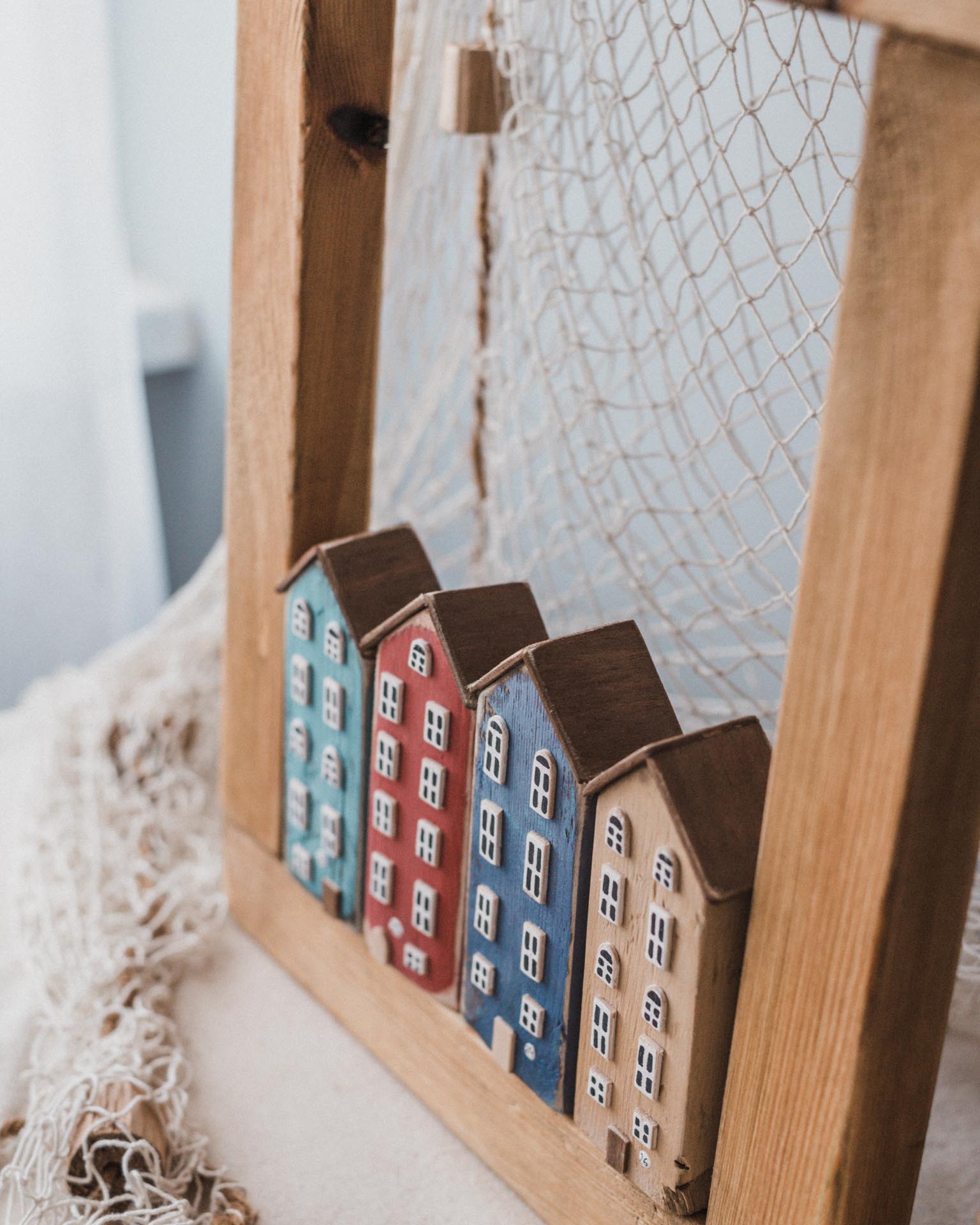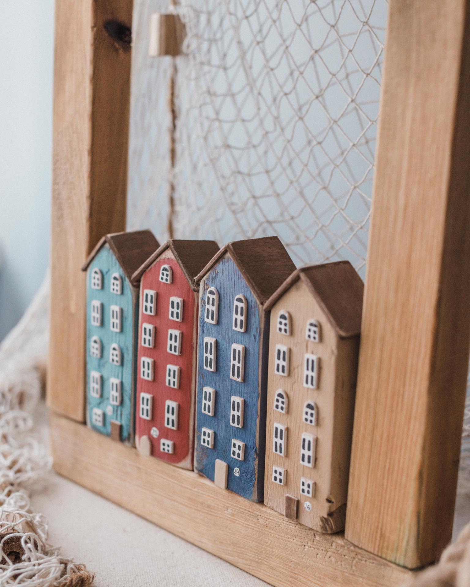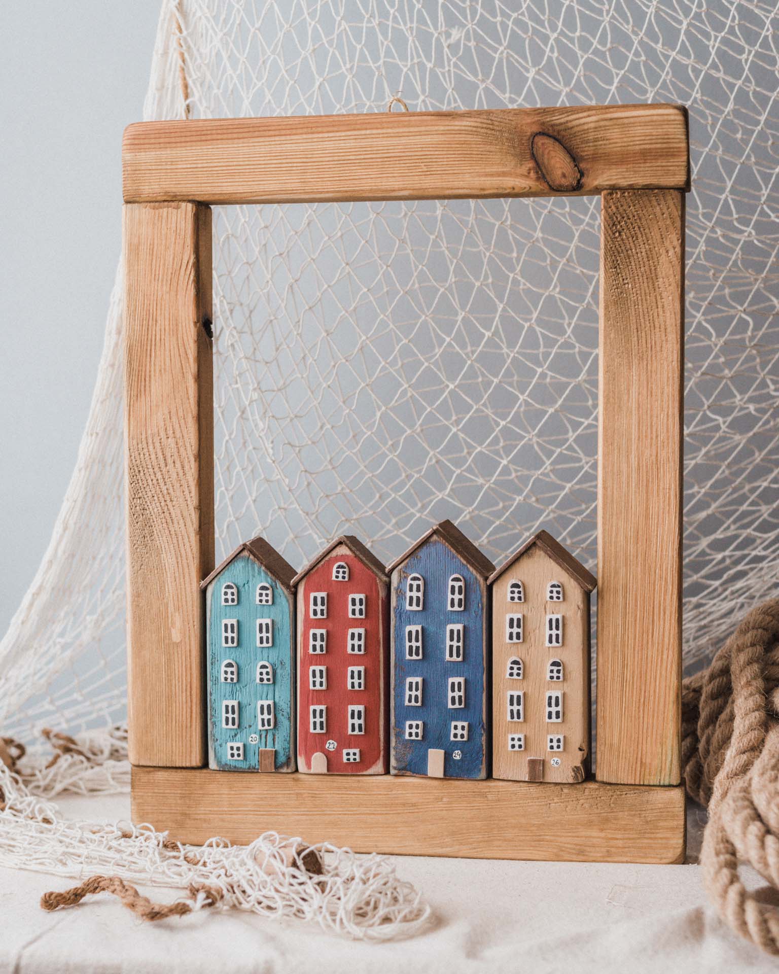 Dodaj do swojego domu ciepło i odrobinę skandynawskiego uroku dzięki naszej drewnianej ramie z ręcznie wykonanymi domkami. Każdy element jest starannie rzeźbiony i malowany, co nadaje dekoracji niepowtarzalny charakter. Naturalne drewno i subtelne detale sprawiają, że rama idealnie wpisuje się w różne style wnętrzarskie – od minimalistycznych po klasyczne.
